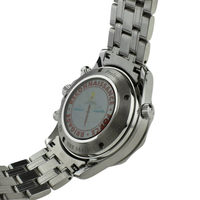 Crafted in stainless steel, this 41.5mm diver’s chronograph features a striking blue wave-pattern dial and a matching unidirectional rotating bezel, ensuring both style and function. Powered by the reliable automatic Caliber 1164, the watch offers chronograph functionality and a date display for practical everyday use.