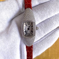 We are pleased to present this beautiful Cartier timepiece, reference WJ302050, crafted in luxurious 18K white gold and elegantly adorned with diamonds. This refined watch perfectly reflects Cartier’s reputation for combining fine watchmaking with high jewelry craftsmanship.