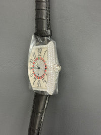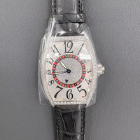 We are pleased to present this rare and striking timepiece from Franck Muller — the “Vegas” series reference 5850 VEGAS D CD OG, crafted in luxurious 18 K white gold and featuring the signature roulette‑game inspired dial from the Las Vegas‑themed collection.