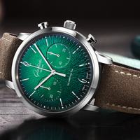 This Chronograph Annual Edition features a beautiful dial. The stone green dial with a gradient effect and delicate embossing adds a deeper elegance to the wrist. True to the Sixties, the sapphire crystal glass, reminiscent of the plastic windshields of the 1960s, has been carefully molded into a dome shape over time. True to the Sixties spirit, the sapphire crystal glass, reminiscent of the plastic crystals of the 1960s, has been carefully molded into a dome shape over time. The movement is equipped with the in-house automatic caliber 39-34, which boasts a 38-hour power reserve.